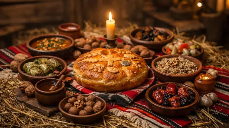 Особено място заемат орехите. Всеки член на семейството си избира по един. Ако ядката е здрава и вкусна, годината ще бъде благополучна и без болести. Ако орехът е изгнил или празен, това се приема като предупреждение за трудности.