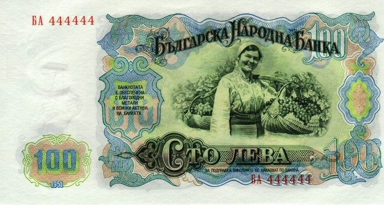 Все още има българи, които си спомнят банкнотата от 100 лева, емисия 1951 година. Тя е отпечатана в “Гознак”, СССР, и е в обращение от 12 май 1952 до 31 март 1962 година. На гърба й в средата е изобразена гроздоберачката Софка Кочева от Лясковец.