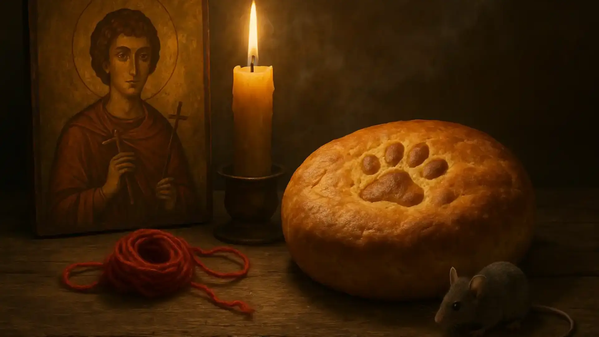 В някои краища на България на този празник се приготвя обредна пита за мишките. Още преди да бъде изпечена, я нашарвали с лапата на котката. Питата намазвали с мед и изяждали у дома, за да не ядат мишките хляба на хората.