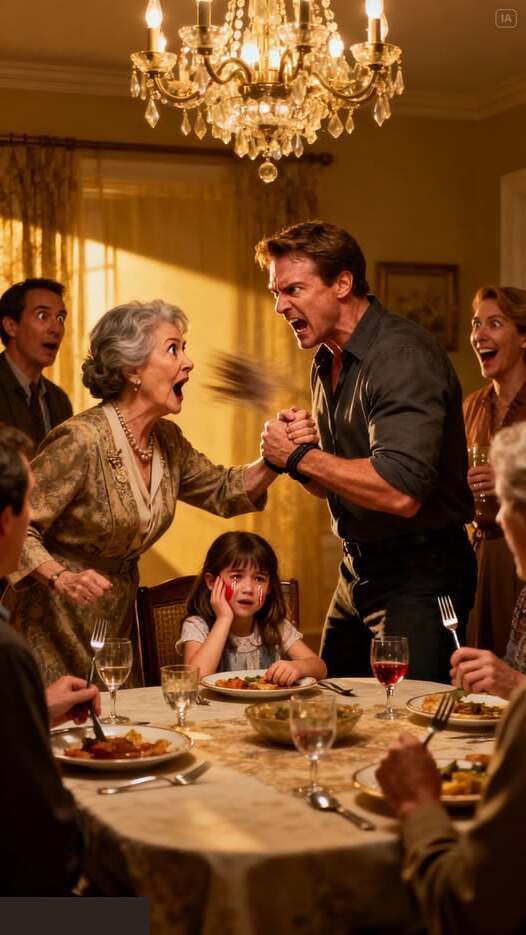 Плесницата отекна из цялата трапезария, преди изобщо да осъзная какво се случва. Дъщеря ми застина, малката ѝ ръчичка се вдигна към бузата, а долната ѝ устна трепереше неудържимо. В стаята настъпи тишина – глуха, напрегната, като вакуум от шок.